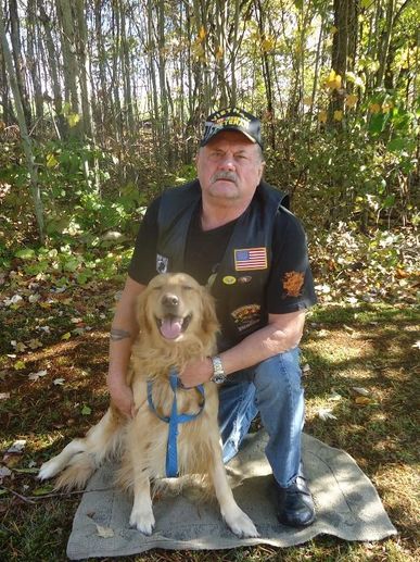 Hello My name is Wayne and I am a disabled Vietnam Veteran who served in the Marines in Vietnam during 1967-68. About 20 years ago I was diagnosed with Agent Orange and thus have had many complications. Just to name a few are Lung Cancer, Prostate Cancer, Quadruple By-pass, Diabetes and Peripheral Neuropathy. Along with military life came PTSD as well. I have had dogs much of my life and have seen the benefits that they can provide to someone in my position. The unconditional love and companionship they offer is second to none. So I completed an application with New Hope Assistance Dogs for a PTSD dog that could also help to signal when my sugar goes high/low and help with balance issues. I received a Golden Retriever named Gunner and I fell in love. He provides me with great comfort and companionship, and always makes me smile. With the help of Gunner, I am able to get through the day with less anxiety, when the PTSD flairs up. Gunner knows when I am having a bad day and is always right by my side. I look forward to waking up and seeing his happy face each day. Gunner is my battle buddy and I am very grateful to have him.